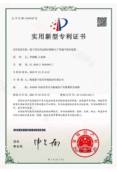 2021年,被河南省科技廳認定為河南省瞪羚企業。金剛石微納粉體河南省工程實驗室、河南省亞微米超硬材料粉體工程技術研究中心建設依托單位、設立了河南省微納米金剛石粉體材料院士工作站及河南省博士后研發基地。